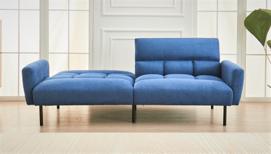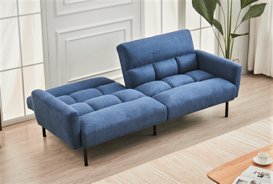 A sofa bed with a split back and seat design allows the user to adjust the backrest and seat cushion separately to find the most comfortable position for sitting or sleeping.