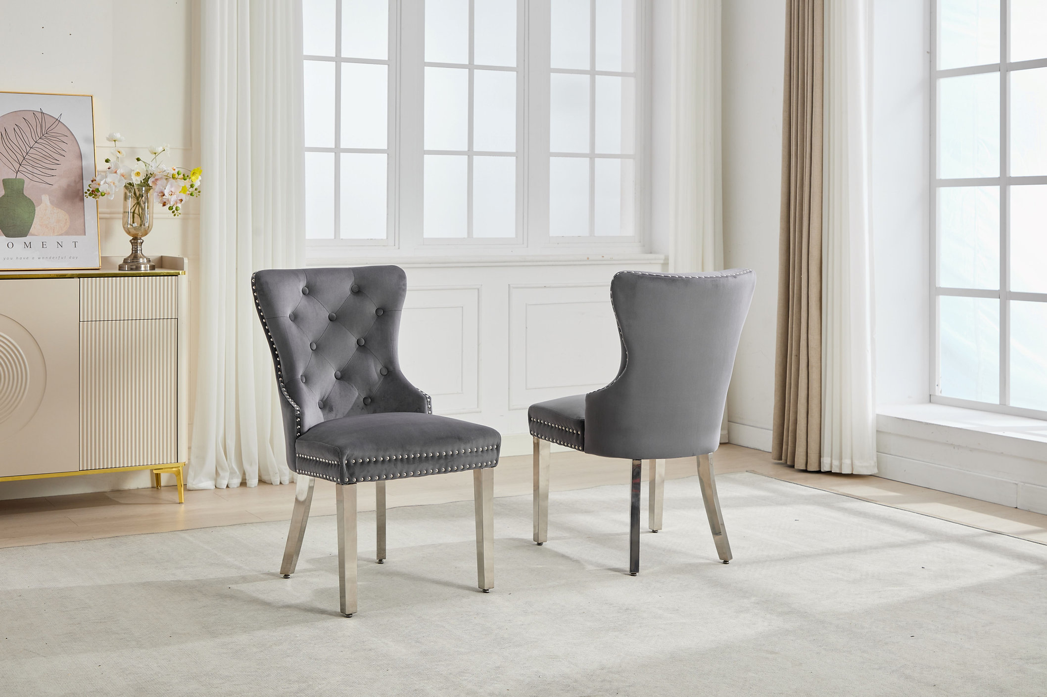 Price for 2 ChairsButton Tufted FrontNailhead DetailsChrome Legs21"L 25"W 39"HSoft-Touch Cream ..
