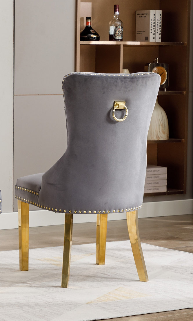 C-1450 Grey Velvet and Gold Legs Dining chair .SALE JUST SET OF 2 CHAIRS (Online only)