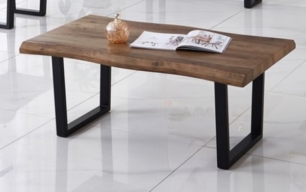 IF-2690 Faux Live Edge Wood Table with Black Metal U Shape Legs 3 Pcs. set.(Online only)