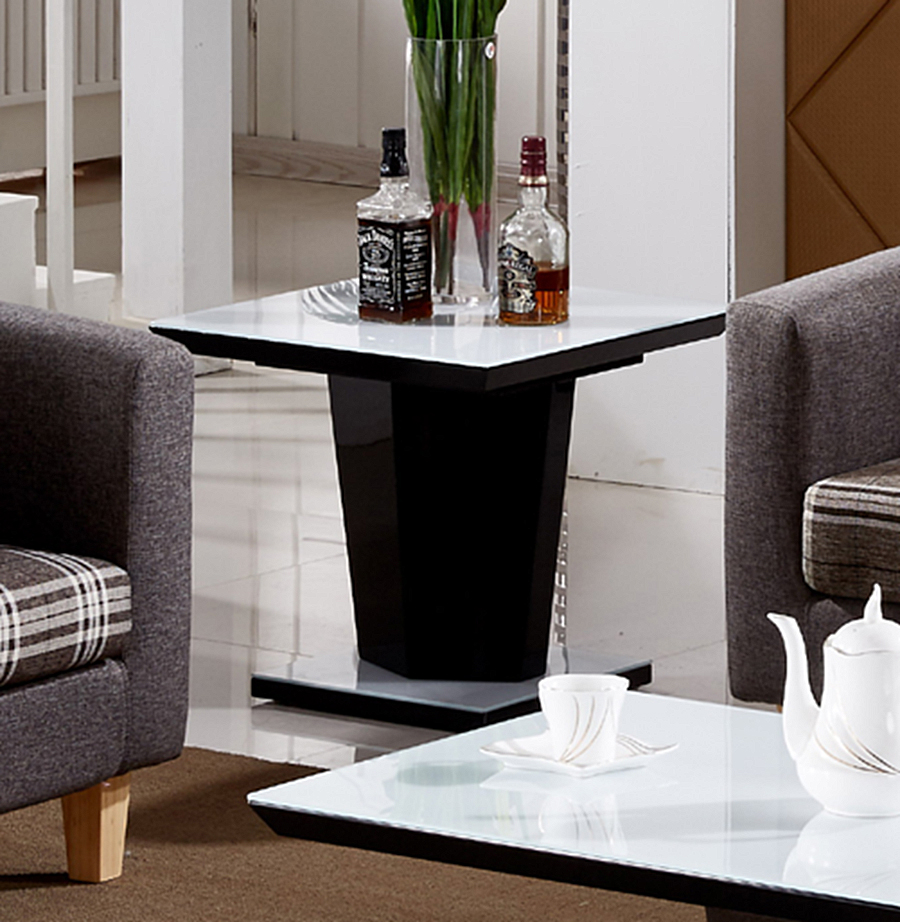 Size: 47.25 X 15.75 X 30’’DESCRIPTION: Table top optic white glass and Middle part in High gloss bla..