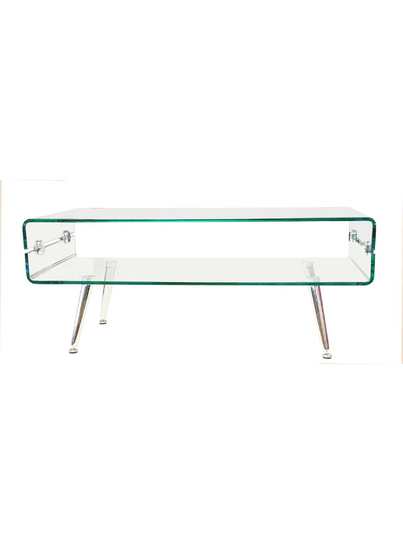 DESCRIPTION: Tempered 12 mm clear glass top with shelf and solid wood/metal legs.Colours: Dark Wal..