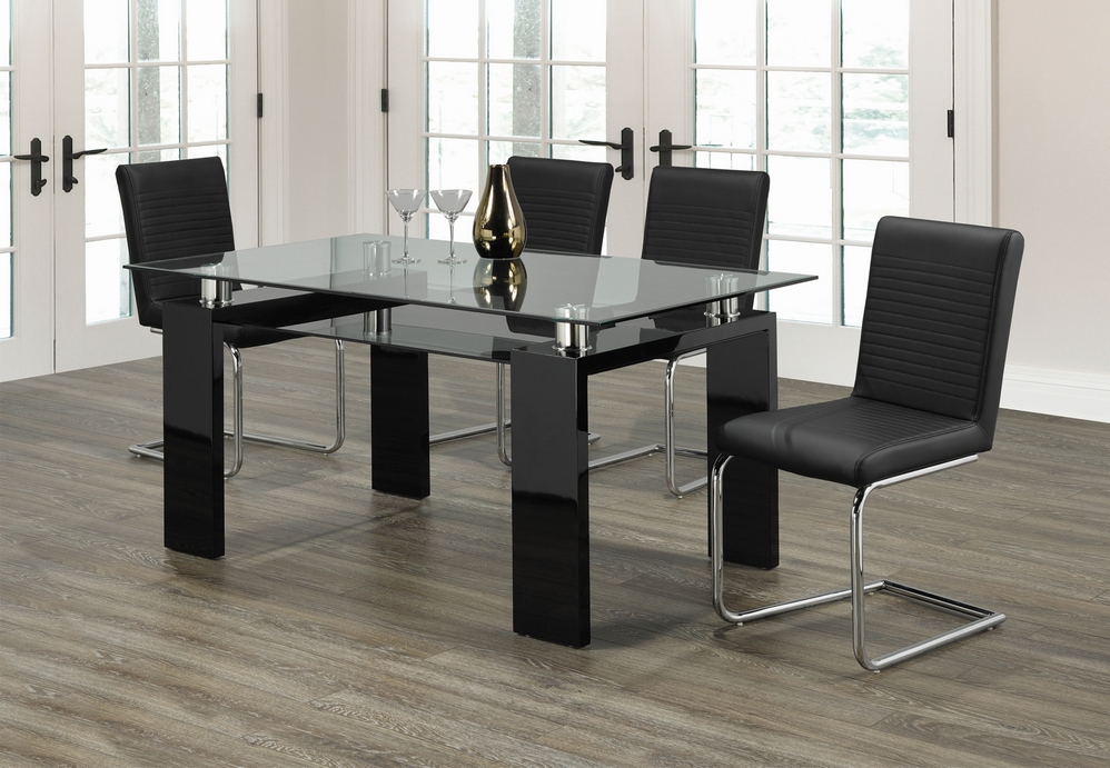 T-1485 Clear Glass Top Dining table with Black gloss Legs (Online only)
