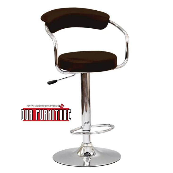 This bar stool  features an Espresso finish with an adjustable chrome base. The metal arm design gives it a modern feel.