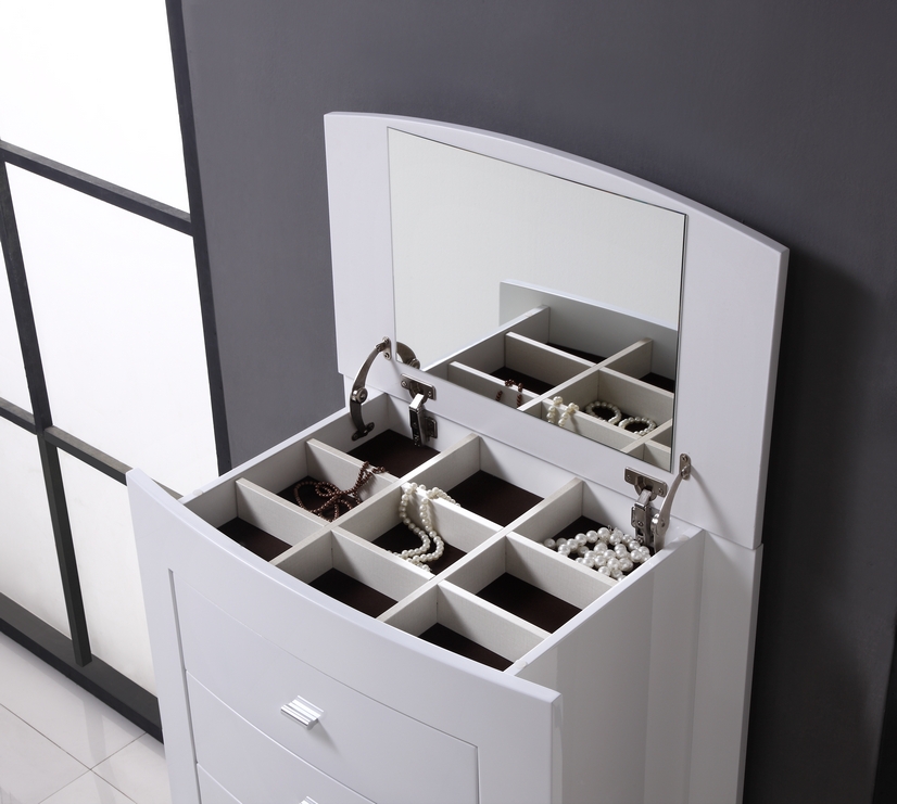 - Chest Features Pull-Up Jewelry Storage/Mirror.