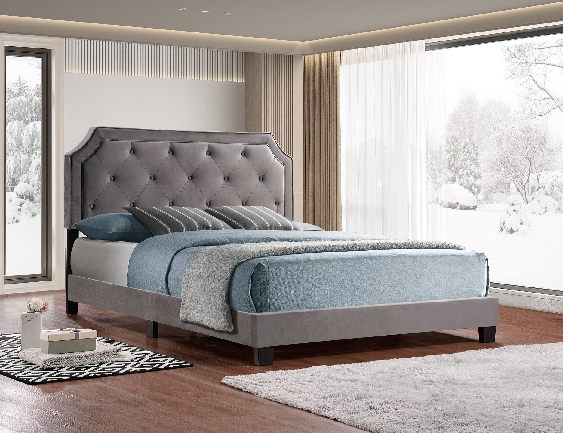 - Product Code: IF-5610 Grey Velvet Fabric Queen, King size bed