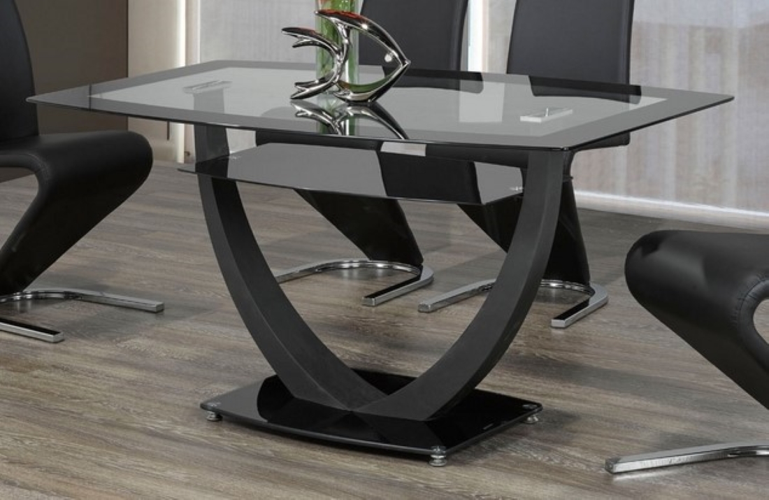 Overall, this dining table has a sleek and contemporary appearance with its black glass and metal base. It would be a great addition to a modern dining room or kitchen.