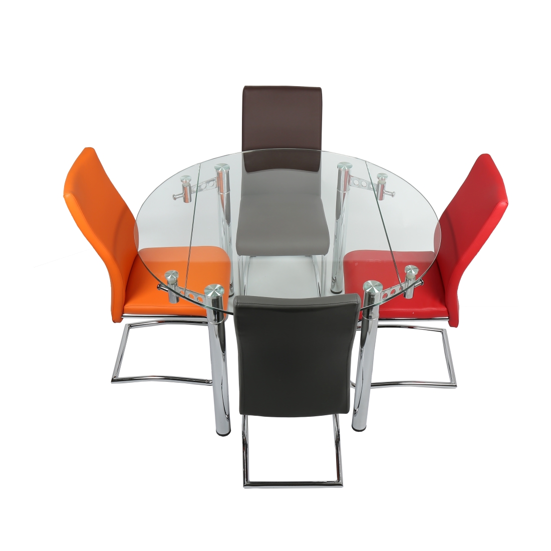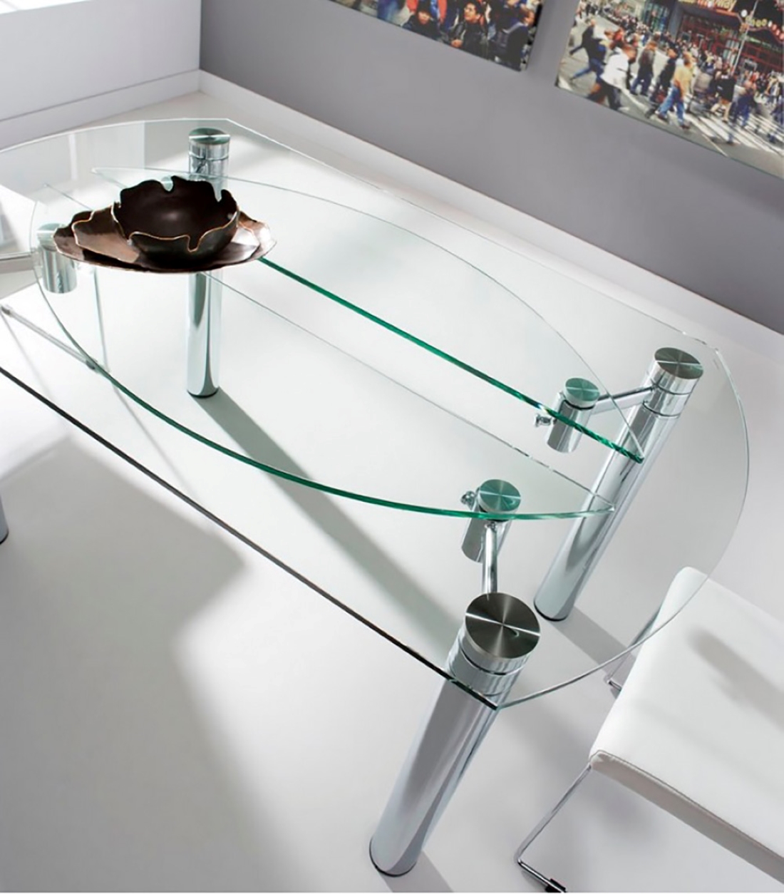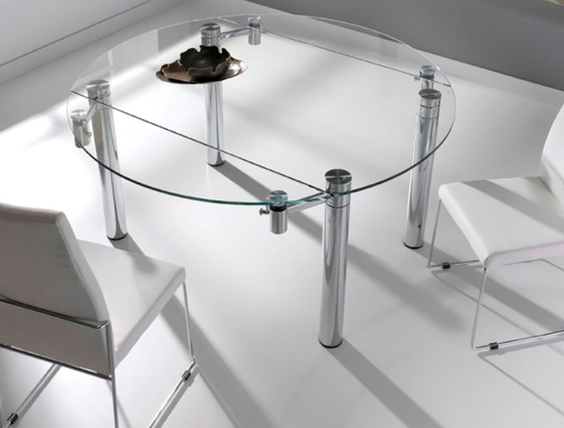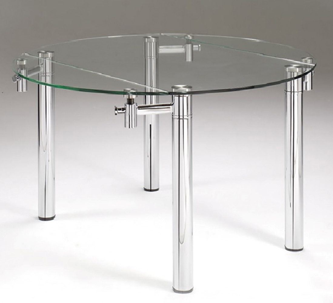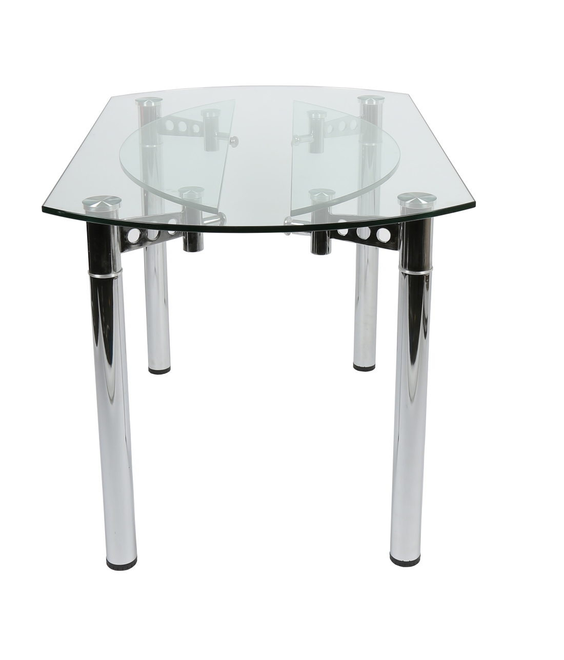 Description: Extendable clear tempered 12 mm glass table top and legs in mirror chrome finish.