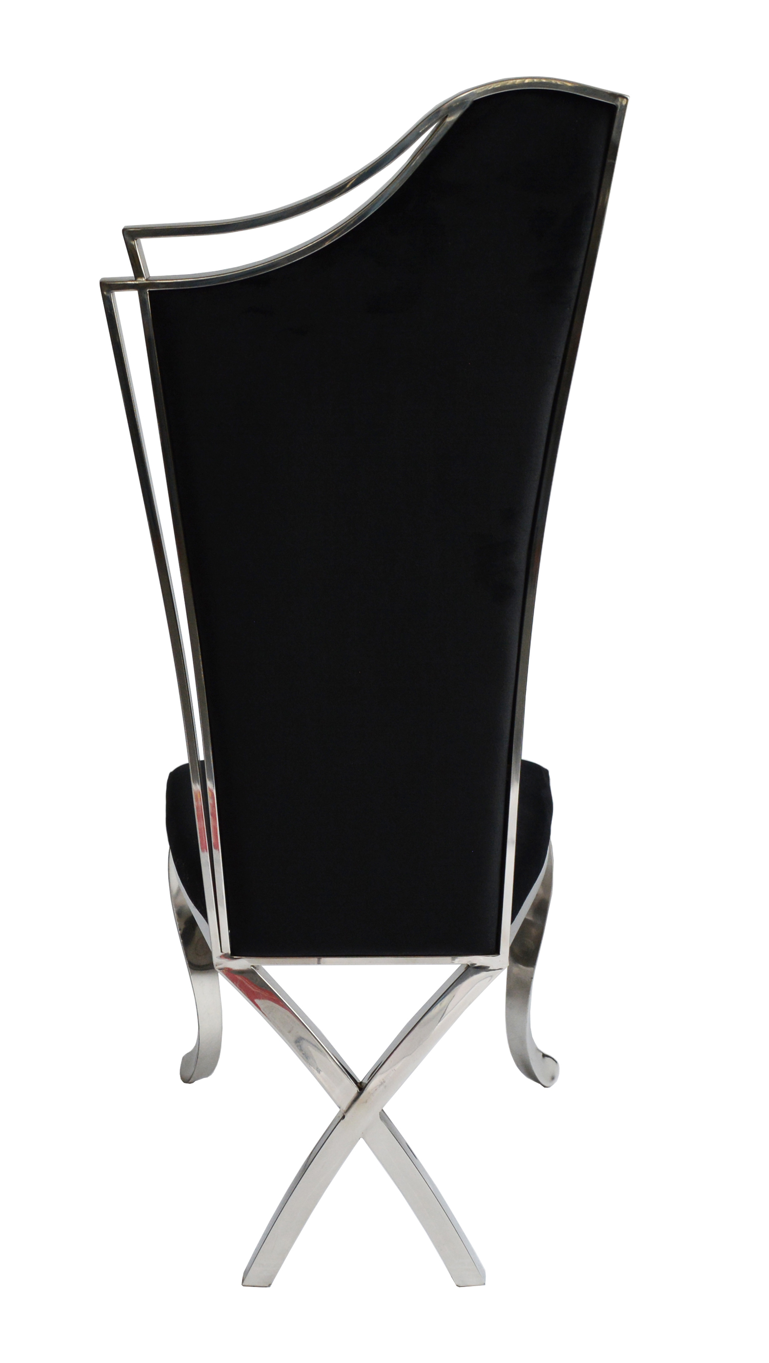 Description:  Upholstery in velvet fabric with shiny stainless-steel frame and legs.