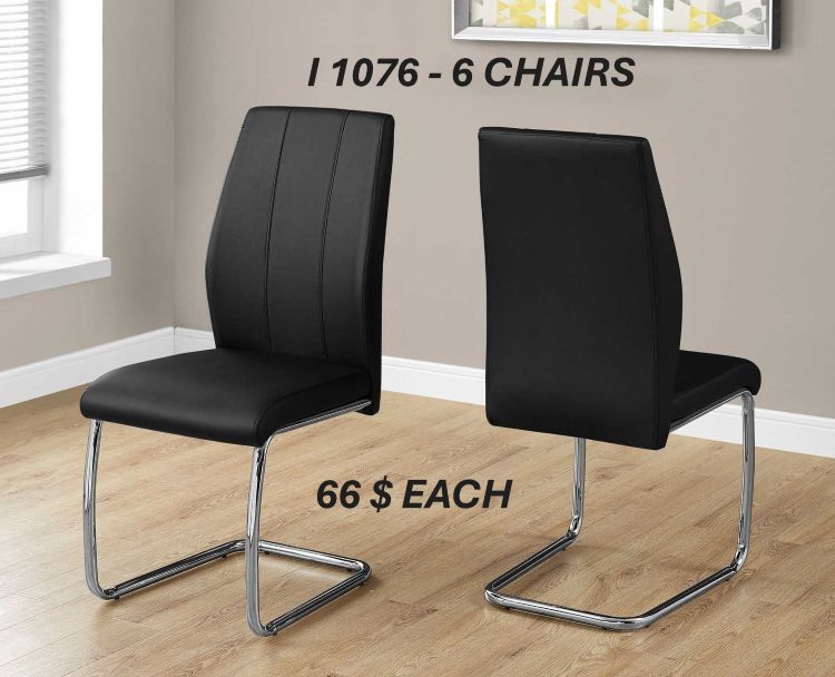 I 1076 Dining Chair-39"H Black Leather-Look Chrome. SET OF 6 CHAIRS (Online only)