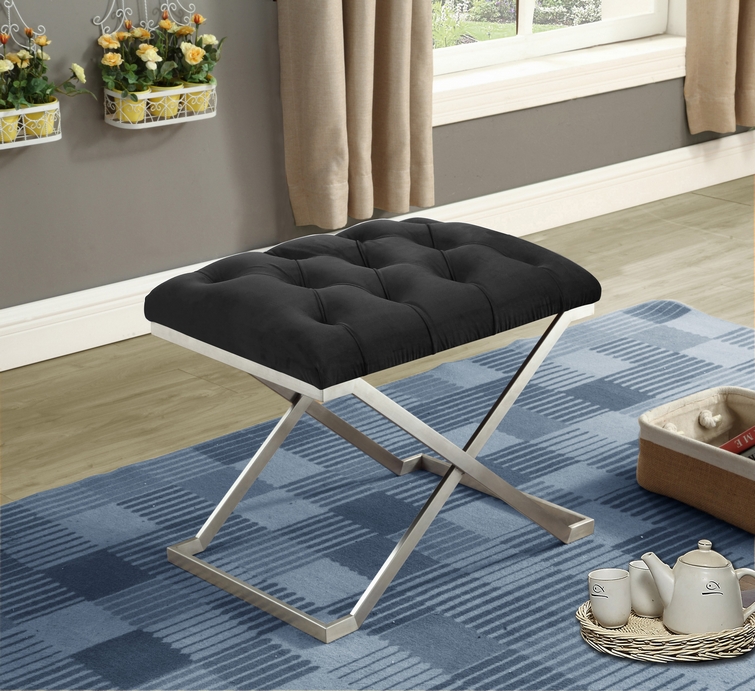 - Product Code: IF-6291 Black Velvet Fabric Ottoman with Stainless Steel Legs