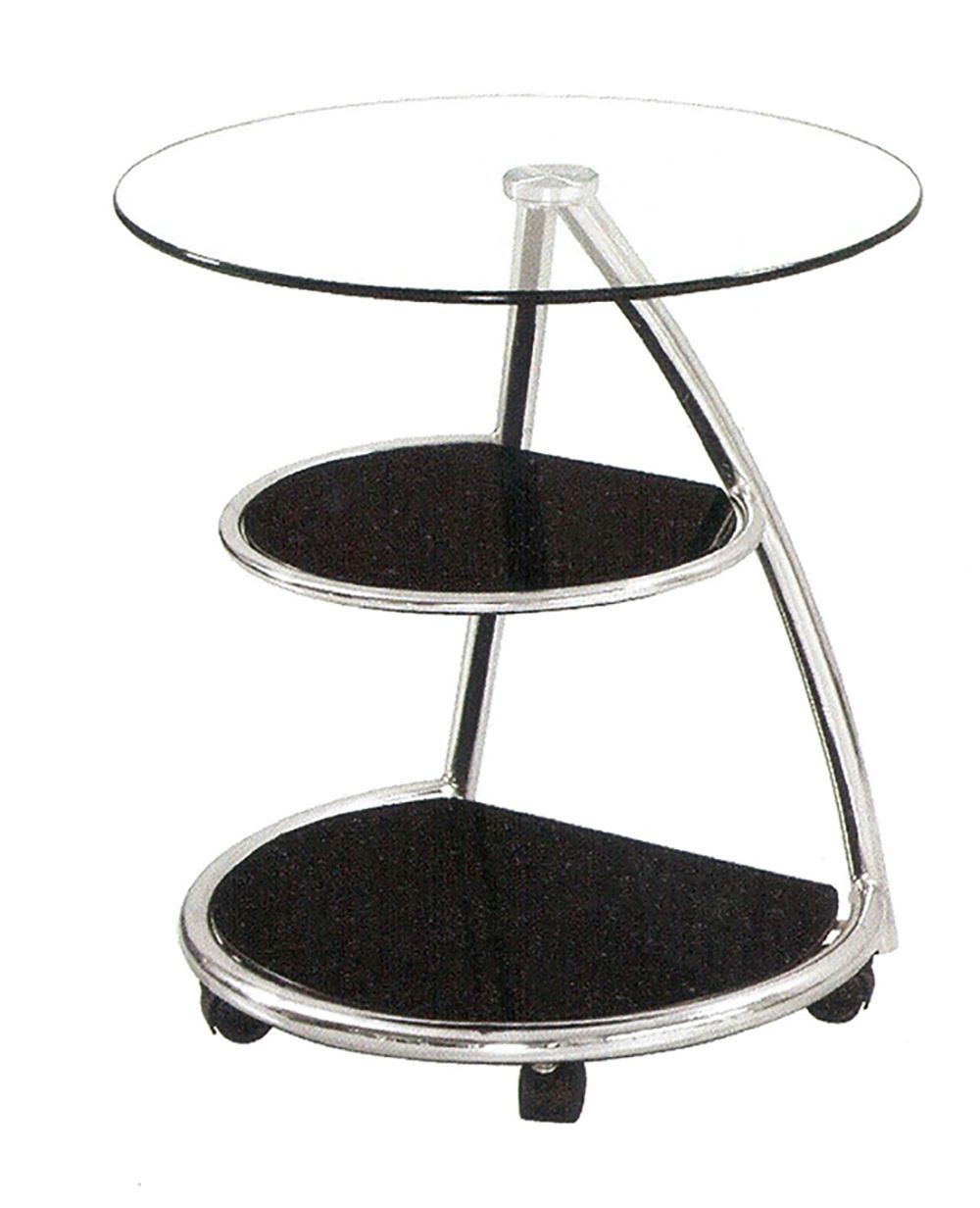 Tempered transparent glass 10 mm with shelves in colour glass having lockable casters.