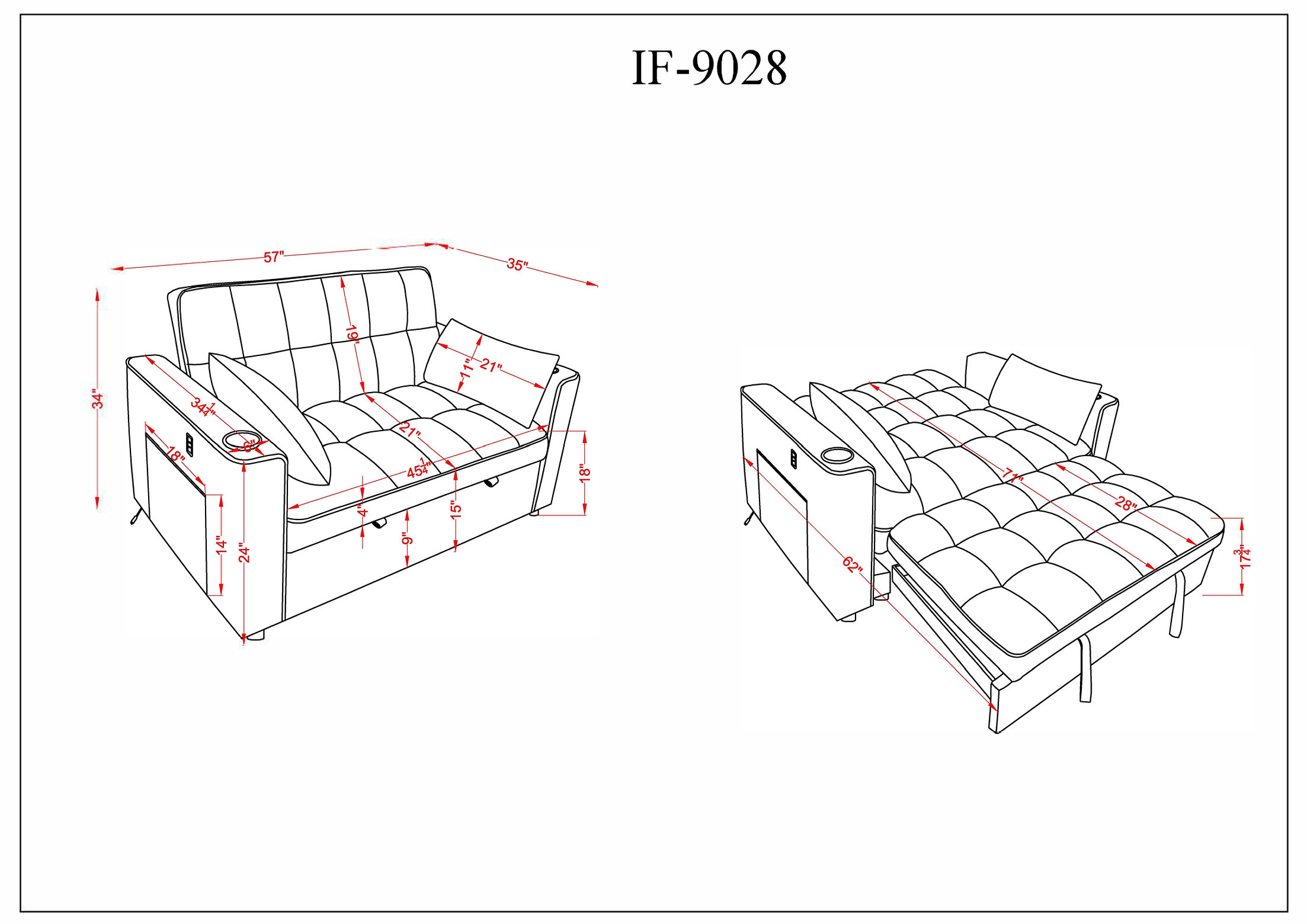 Sofa Position 35”L 57”W 34”H